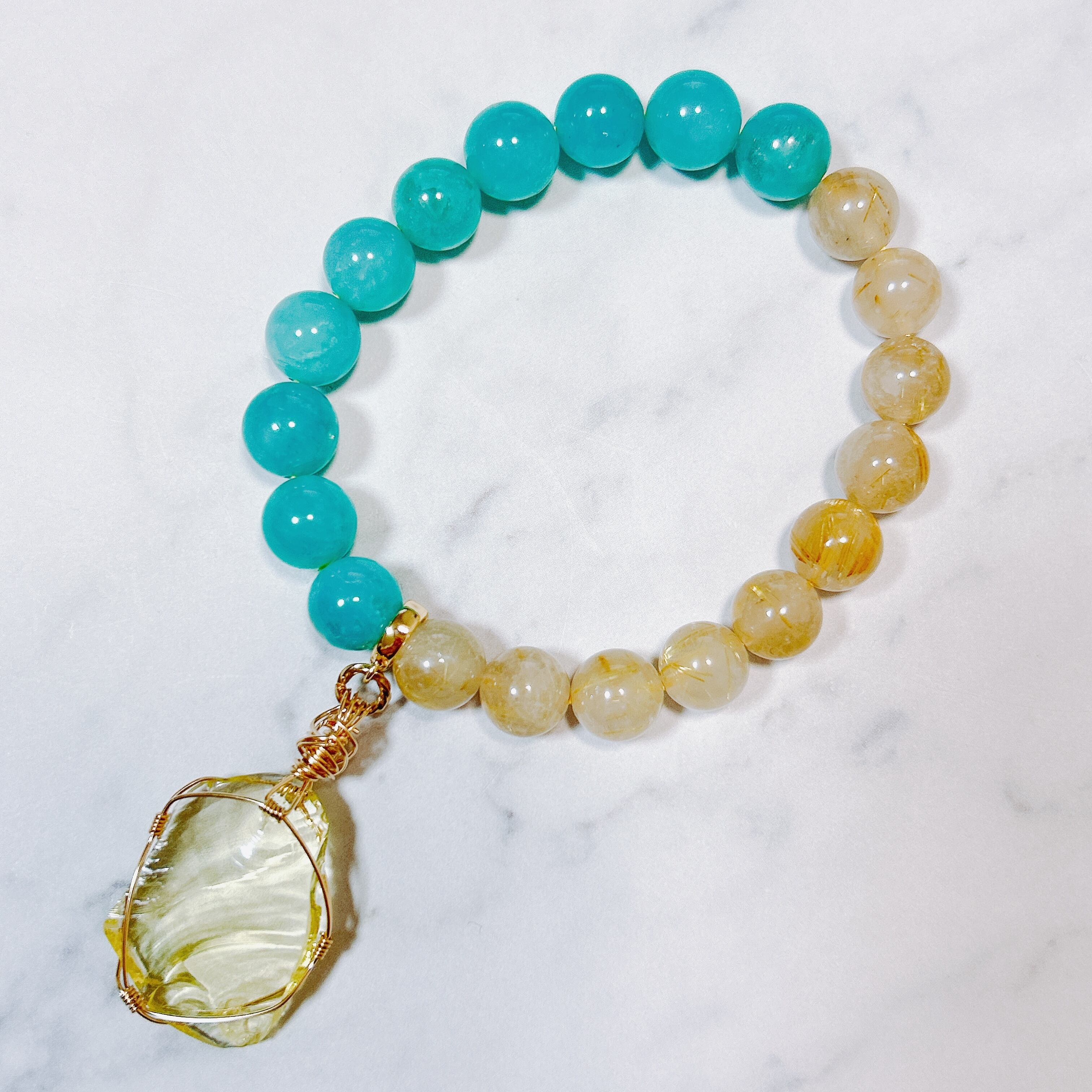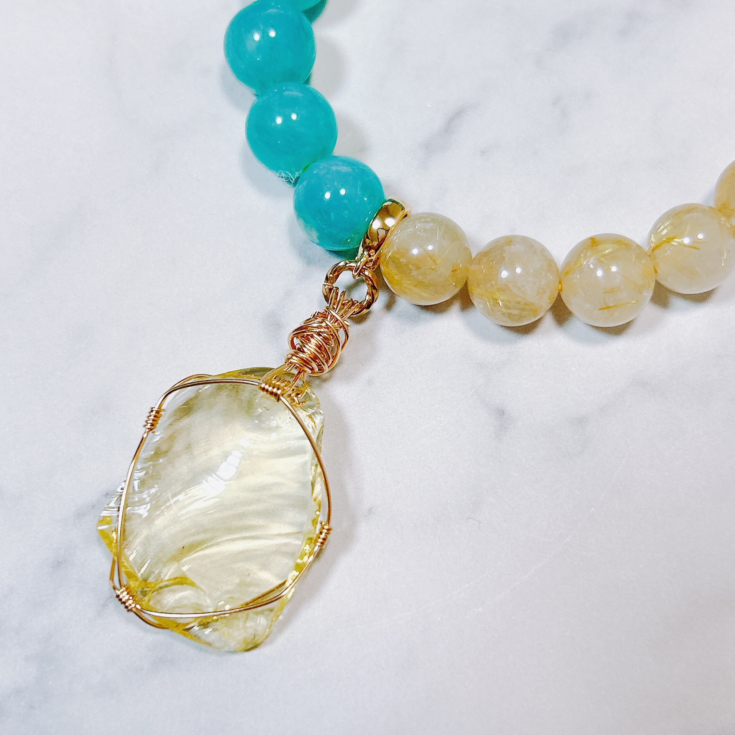 中国産アマゾナイトシリカ&ブラジル産ゴールデンルチルクォーツ