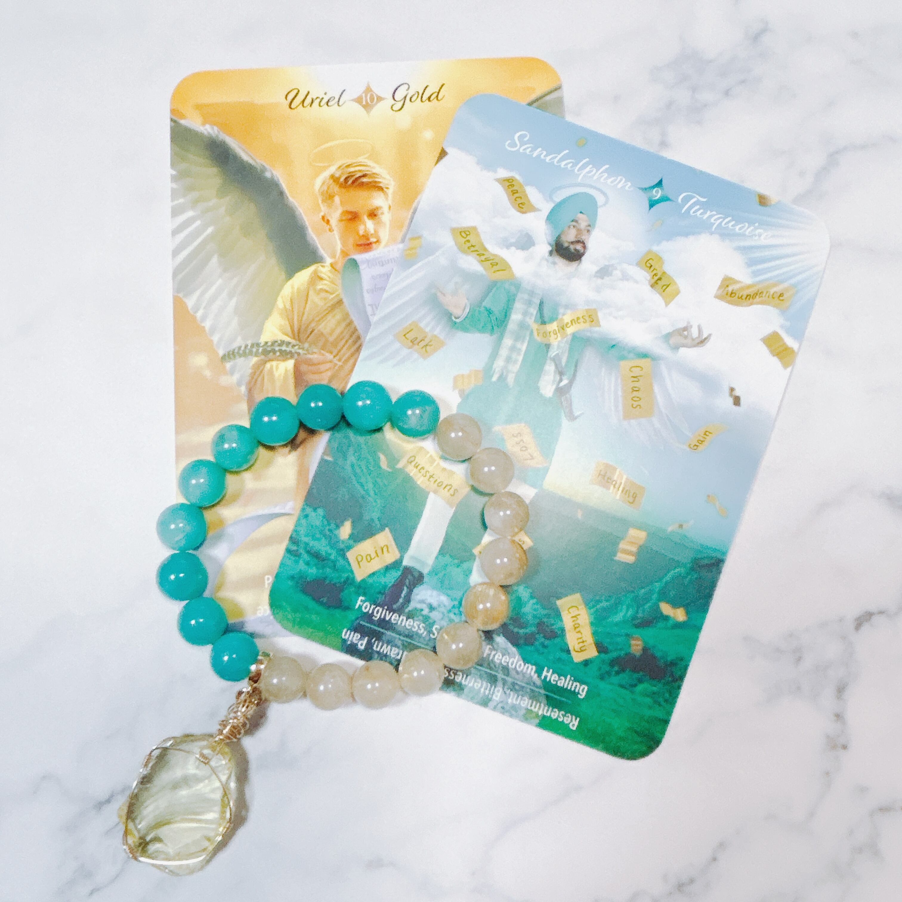 B-17/大天使サンダル✴︎ターコイズ&大天使ウリエル✴︎ゴールド/ ハーフ/&ハーフ/ 中国産アマゾナイトシリカ&ブラジル産ゴールデンルチルクォーツ