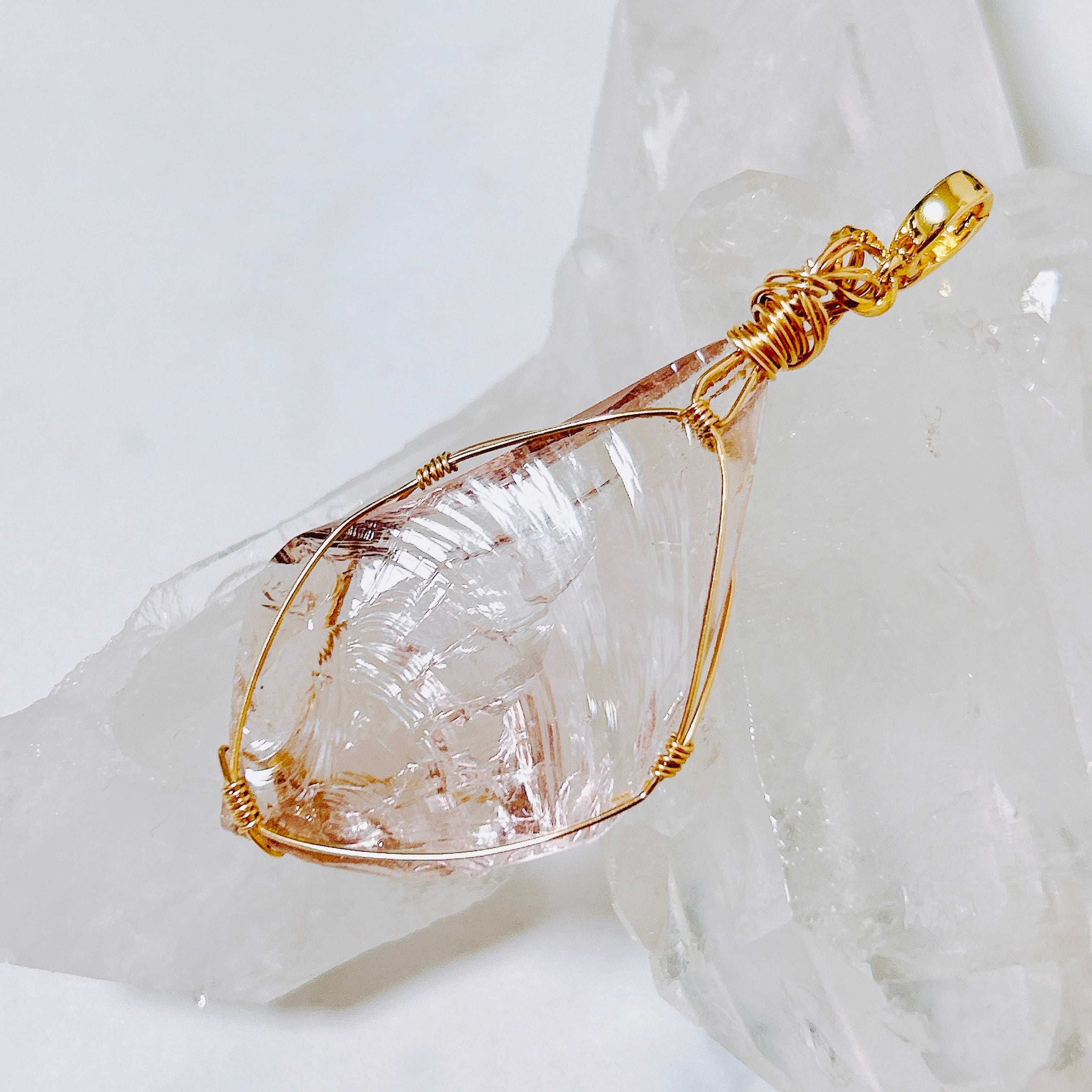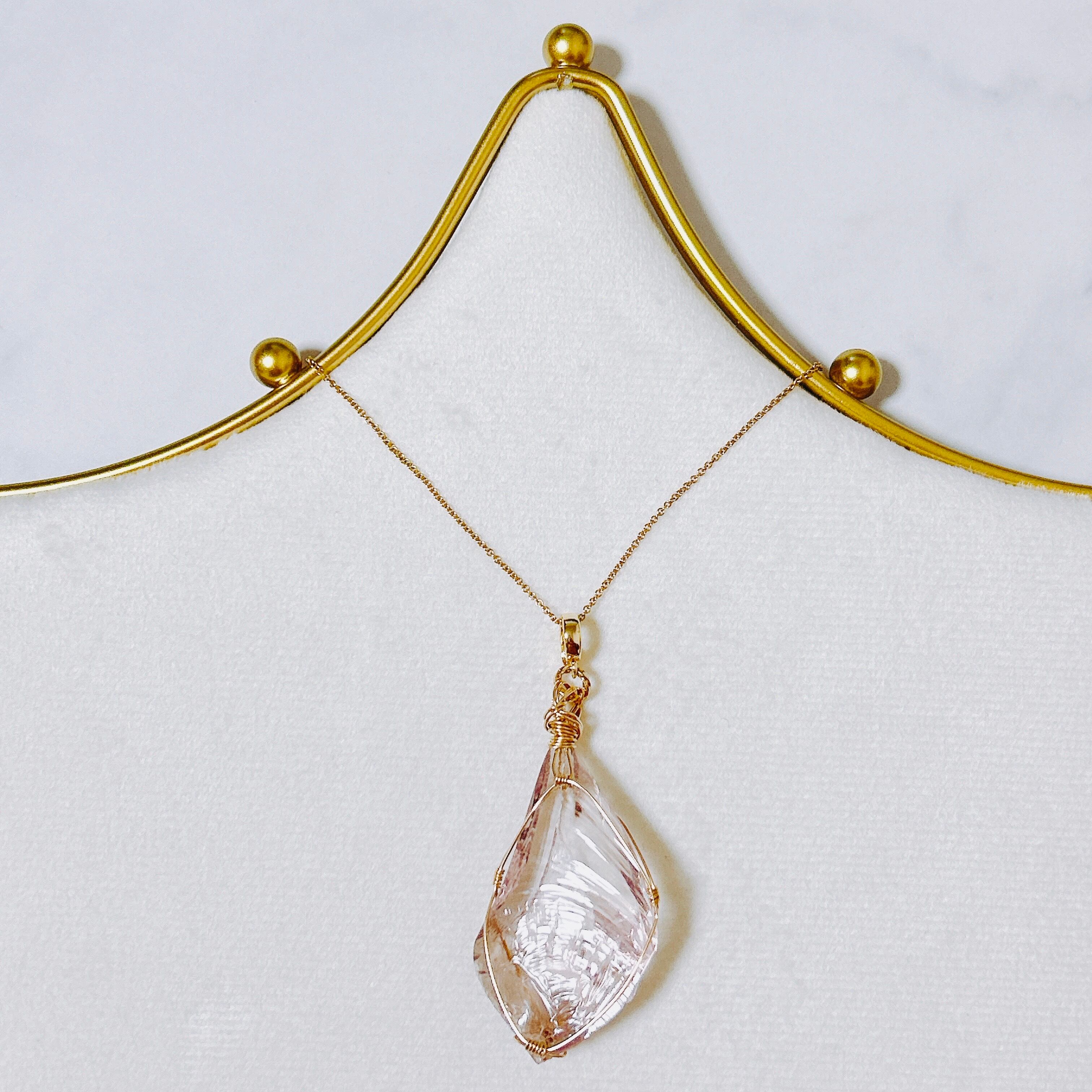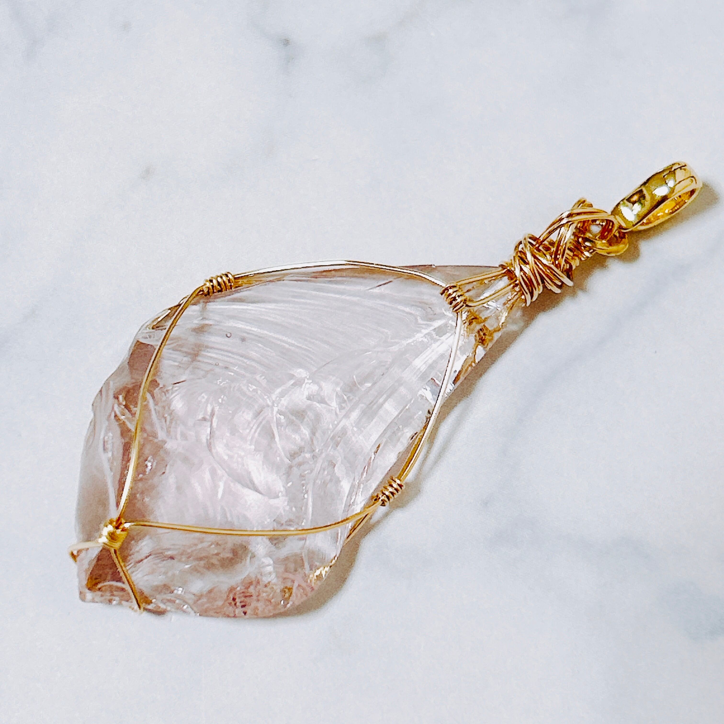 この愛と光に満ちあふれたアンダラクリスタル/ハートゴットウィズインピンクを14KGFで巻き上げ、ブレスレットに装着できるようクリッカーをつけペンダントトップとしてもお愉しみいただけるよう2WAY仕様にいたしました。